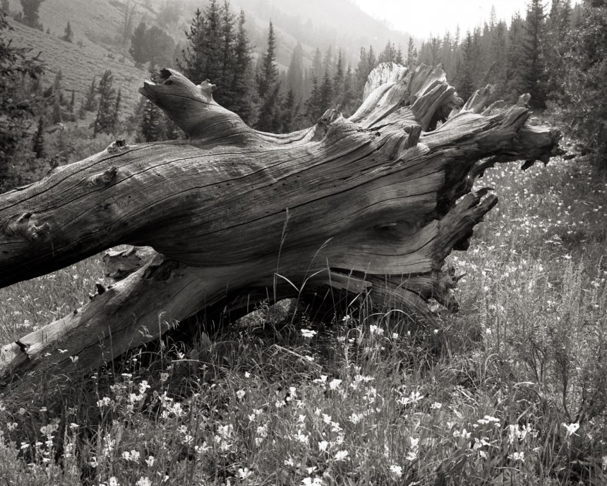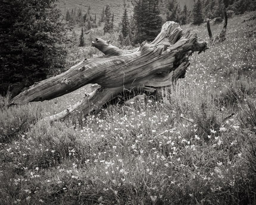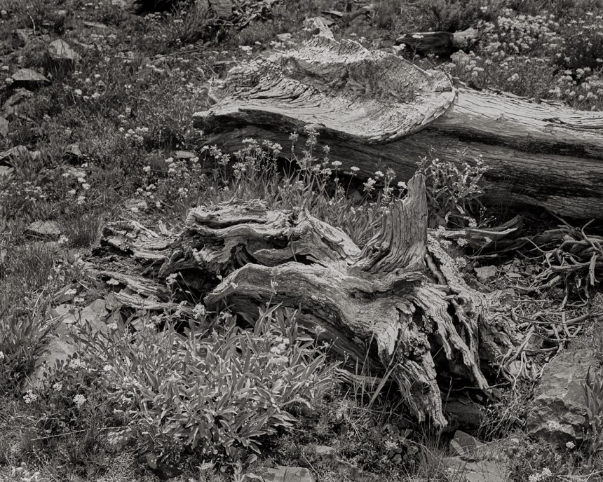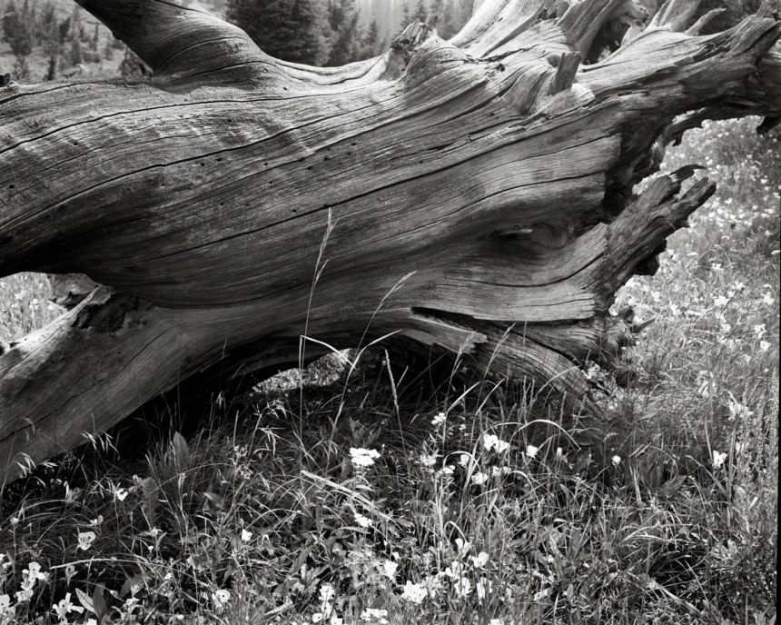 the surface of, perhaps, a very old log sitting quietly in a meadow of wild