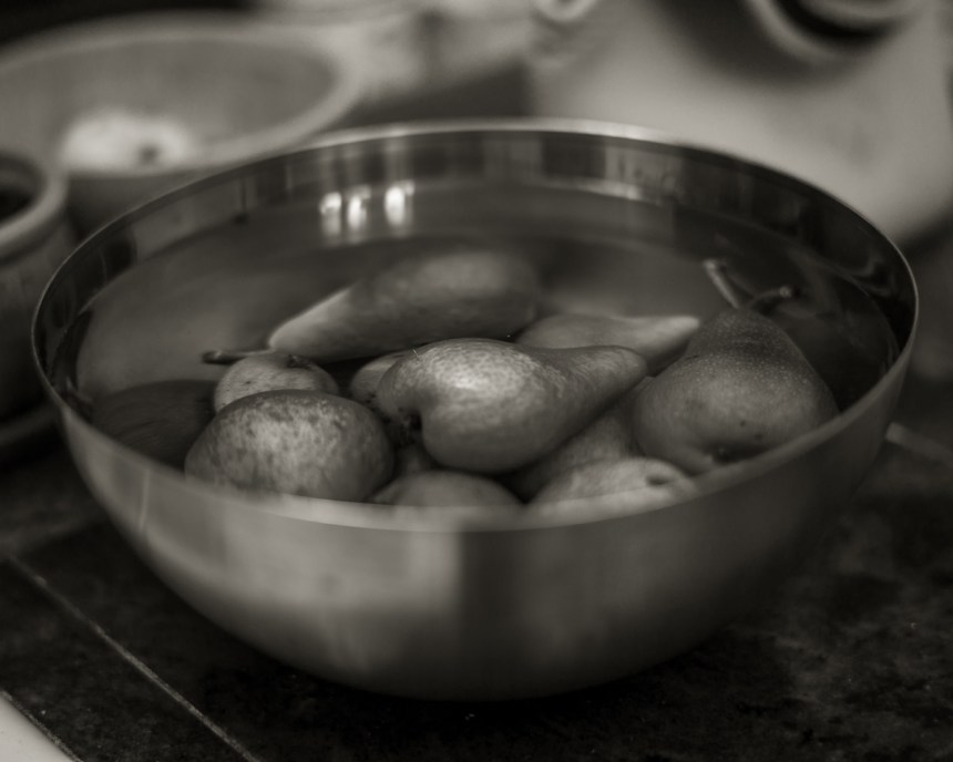 After surviving a snow storm in the PNW, I am thinking about the last summer. This was the first time our Pear tree in last 2 years bear so many Pears [Ha!] We had to spray most of the tree with anti-fungal oil. I believe we only picked 2/3rd of the pears, and we gave away alot to neighbors & friends!